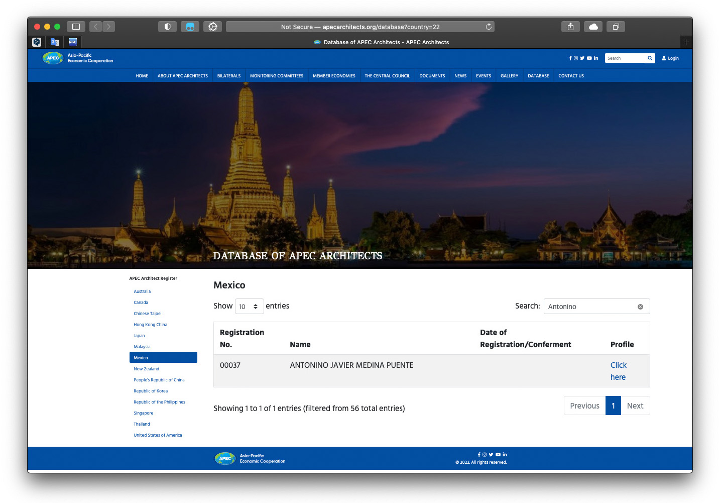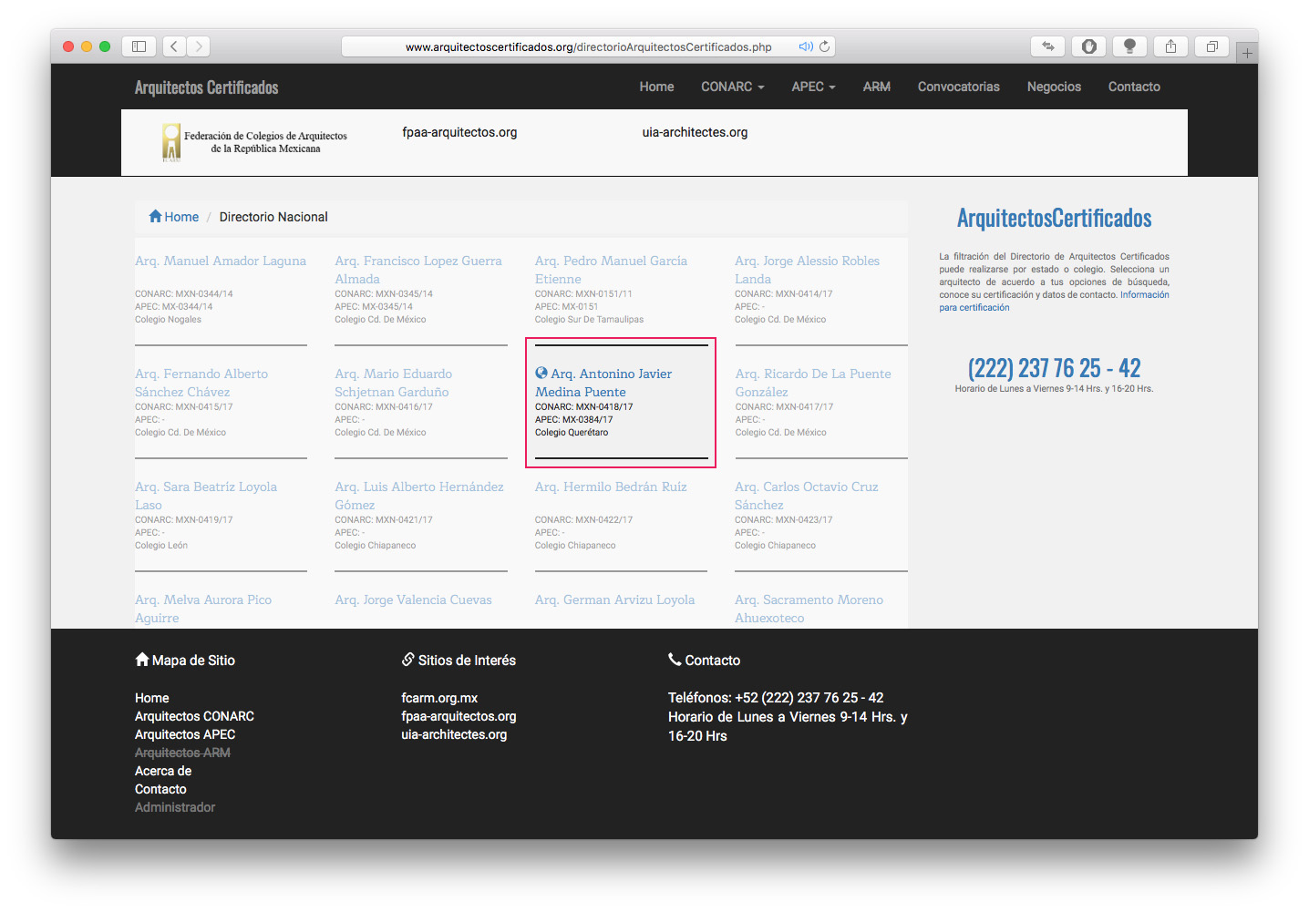 Antonino Medina, aujourd'hui a reçu l'enregistrement national de certification professionnelle CONARC et a également été authentifié Architecte APEC par la Fédération des architectes de la République mexicaine FCARM. Créditant son expérience et sa pratique professionnelle approuvée par les associations membres de la Fédération, étant de nature fédérale.